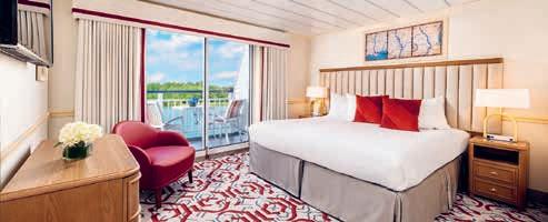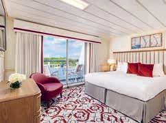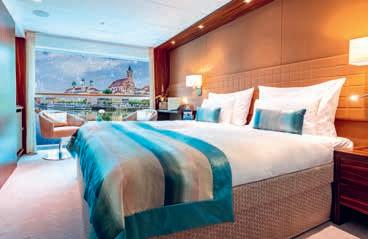 De royale cabines zijn sfeervol en comfortabel ingericht met elementen van leer, mahoniehout en marmer. Op het Bovendek en op het Middendek bevinden zich de 2-persoons A- en B-cabines (Economy) van 15 m² en twee 1-persoons B-cabines van 13 m² met een panorama schuifpui en Frans balkon. Op het Bovenstedek liggen ook enkele A-suites van 23 m². Deze suites beschikken over een privé verandabalkon. De C-cabines (Economy) op het Hoofddek hebben een oppervlakte van 14 m² en beschikken over kleinere vensters die niet geopend kunnen worden.