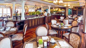 In het luxe panoramarestaurant van hotelschip Mekong Navigator geniet u van de uitstekende volpension verzorging en de voortreffelijke diners met oriëntaalse specialiteiten. Tijdens uw luxe cruise zijn tevens diverse drankjes inbegrepen. De bemanning staat dag in dag uit voor u klaar om uw verblijf zo comfortabel mogelijk te maken. U maakt uw Mekong cruise met internationaal gezelschap. U kunt gratis gebruik maken van wifi in alle gemeenschappelijke ruimtes.