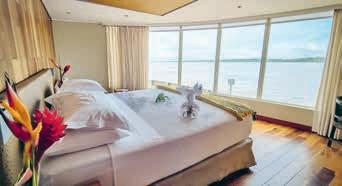 De accommodaties aan boord van de Delfin III voorzien u van al het comfort en de gemakken van een vijfsterrenhotel, terwijl u tegelijkertijd wordt getrakteerd op alle opwindende aspecten van een tocht door het regenwoud. Owners Suite (55 m²)