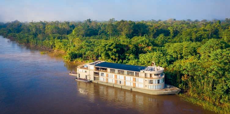Ervaar een luxe expeditie aan boord van de nieuwe Delfin III, perfect afgestemd op zijn omgeving met duurzaam hardhout, handgemaakt Peruaans textiel en regionale kunstwerken. Dit 52 meter lange riviercruiseschip biedt vijfsterren comfort terwijl u varend over de Amazone de rijke biodiversiteit van de tropische regenwouden ontdekt. Aan boord zal het u aan niets ontbreken.