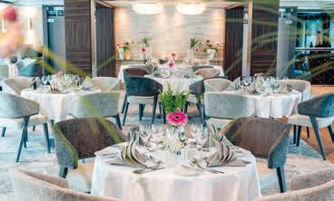 Op het zonnedek is het heerlijk vertoeven op één van de aanwezige ligbedden, terwijl de prachtige en indrukwekkende landschappen aan u voorbijtrekken. Op het Rubindek bevindt zich ook het restaurant met zijn elegante uitstraling.