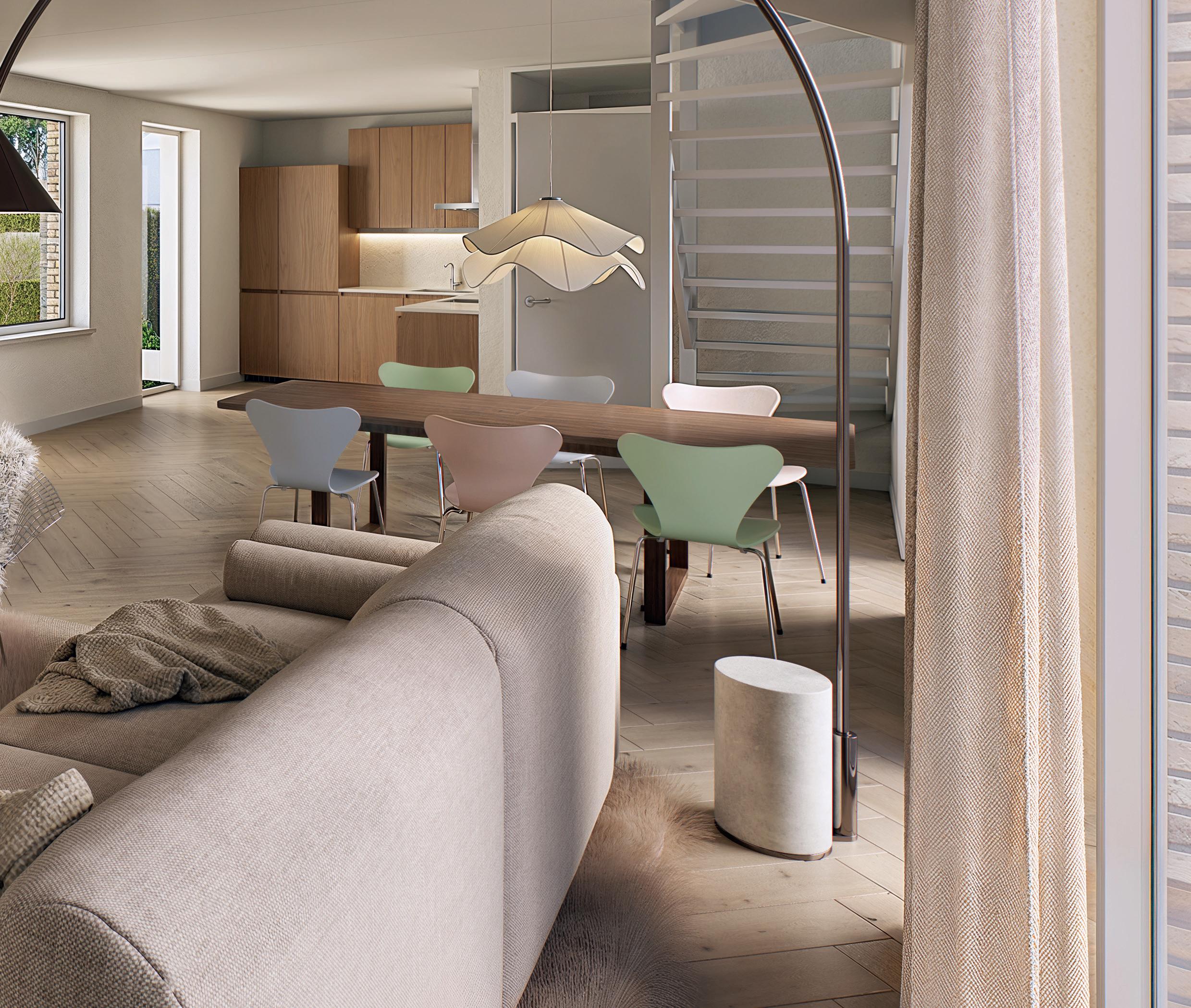 Kies je voor Woonklaar, dan is de afwerking van je woning geregeld voordat je de sleutels ontvangt: van wandafwerking en vloerafwerking tot de trap van je dromen. Vandaag de sleutel, morgen wonen!