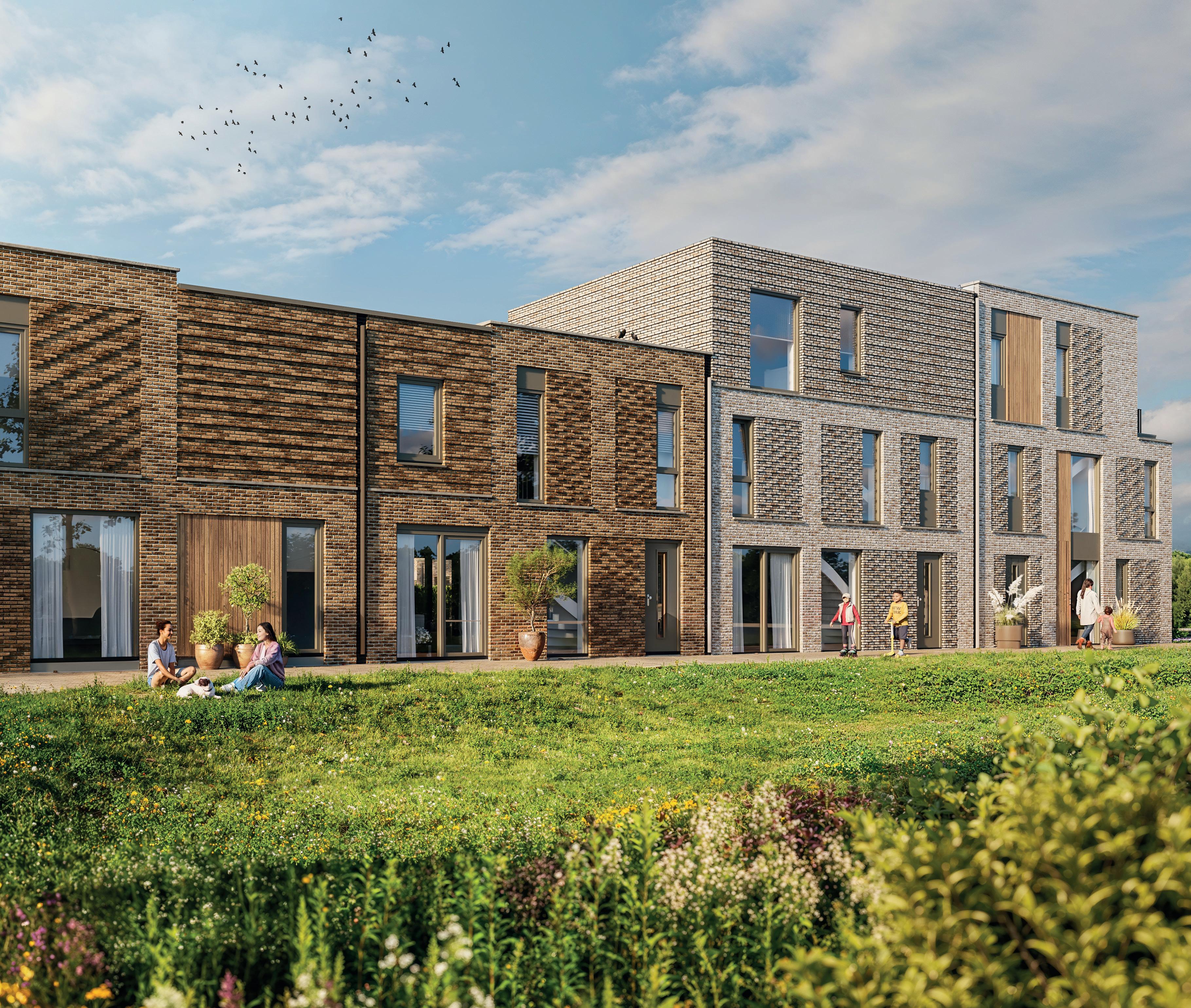 “Het bouwveld waarvoor wij het ontwerp maakten, bestaat uit drie blokken met daarin een gevarieerd aanbod van 70 stadswoningen. Alle woningen zijn duidelijk familie van elkaar, maar toch is elke woning net weer even anders. In de basis zijn er drie woningtypen die door verbijzonderingen in het metselwerk en de toevoeging van bijvoorbeeld een dakterras of een extra