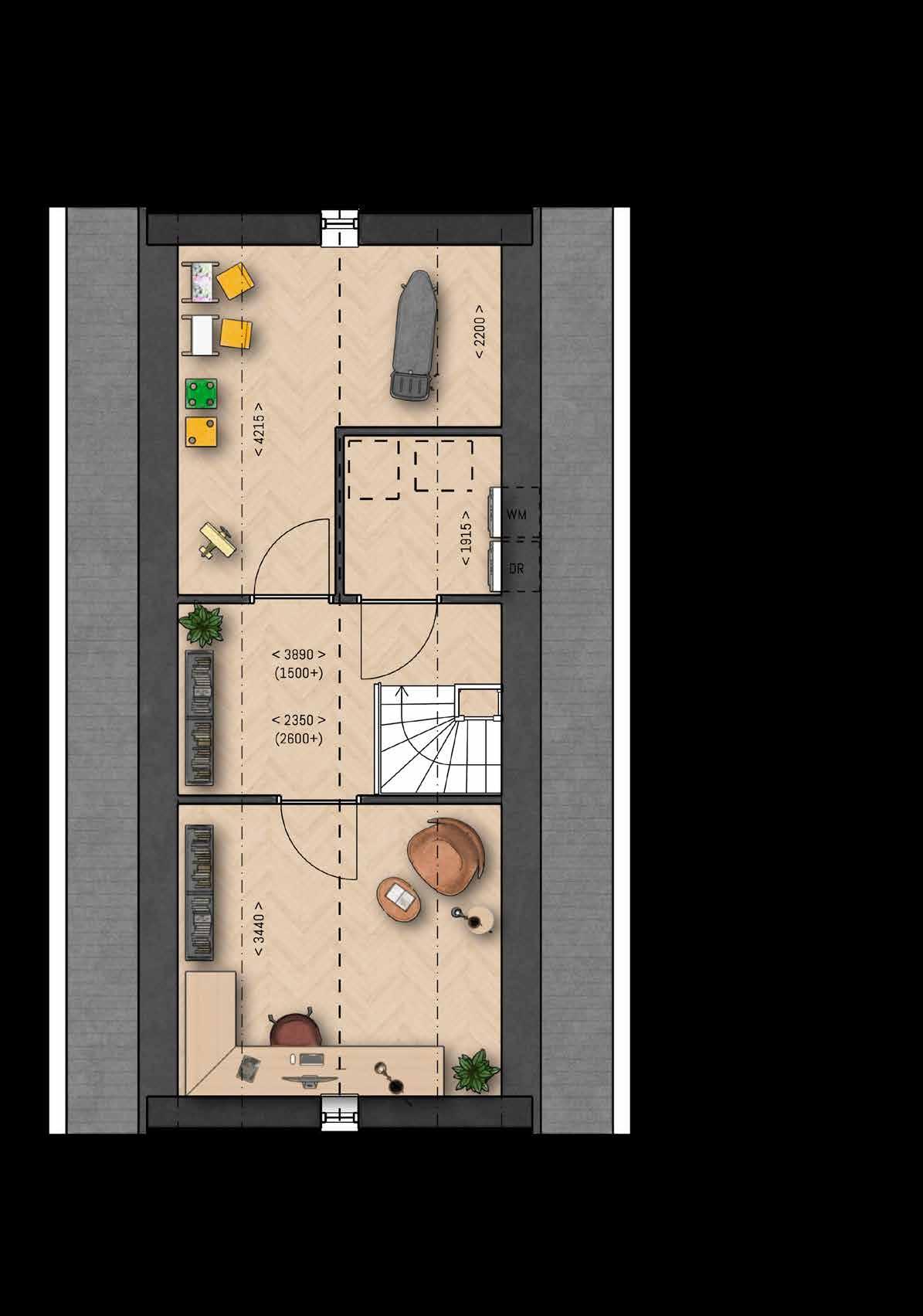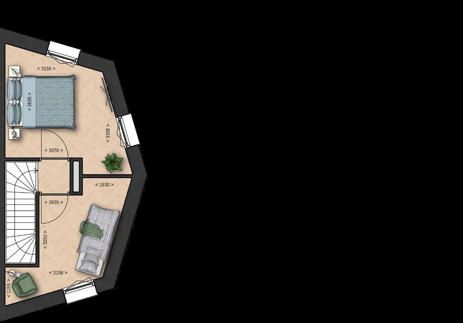 Bouwnummer 101 en 102 (de molenstomp) zijn ook levensloopbestendige woningen met een extra baden slaapkamer op de begane grond. Zie hiervoor pagina 28.