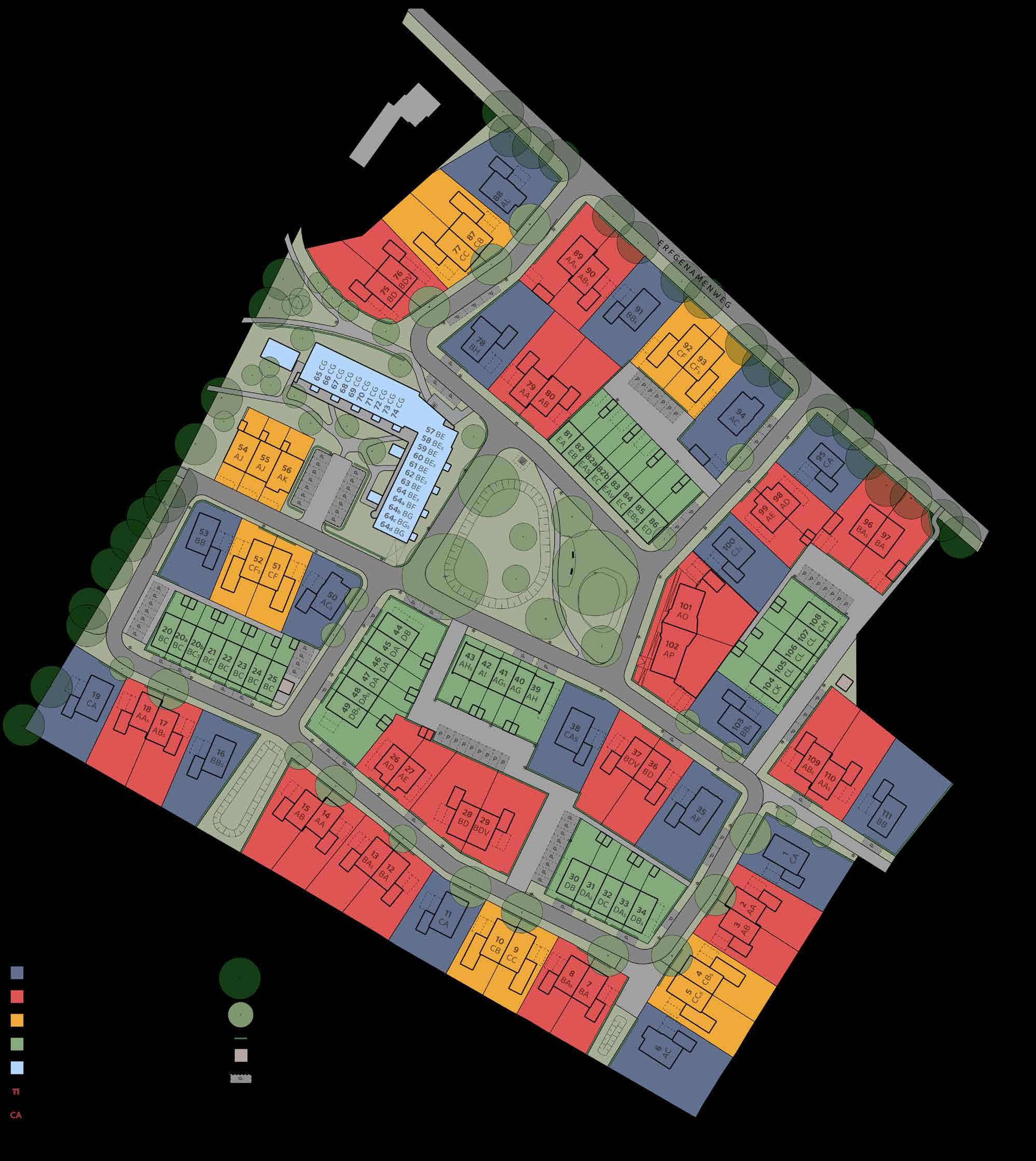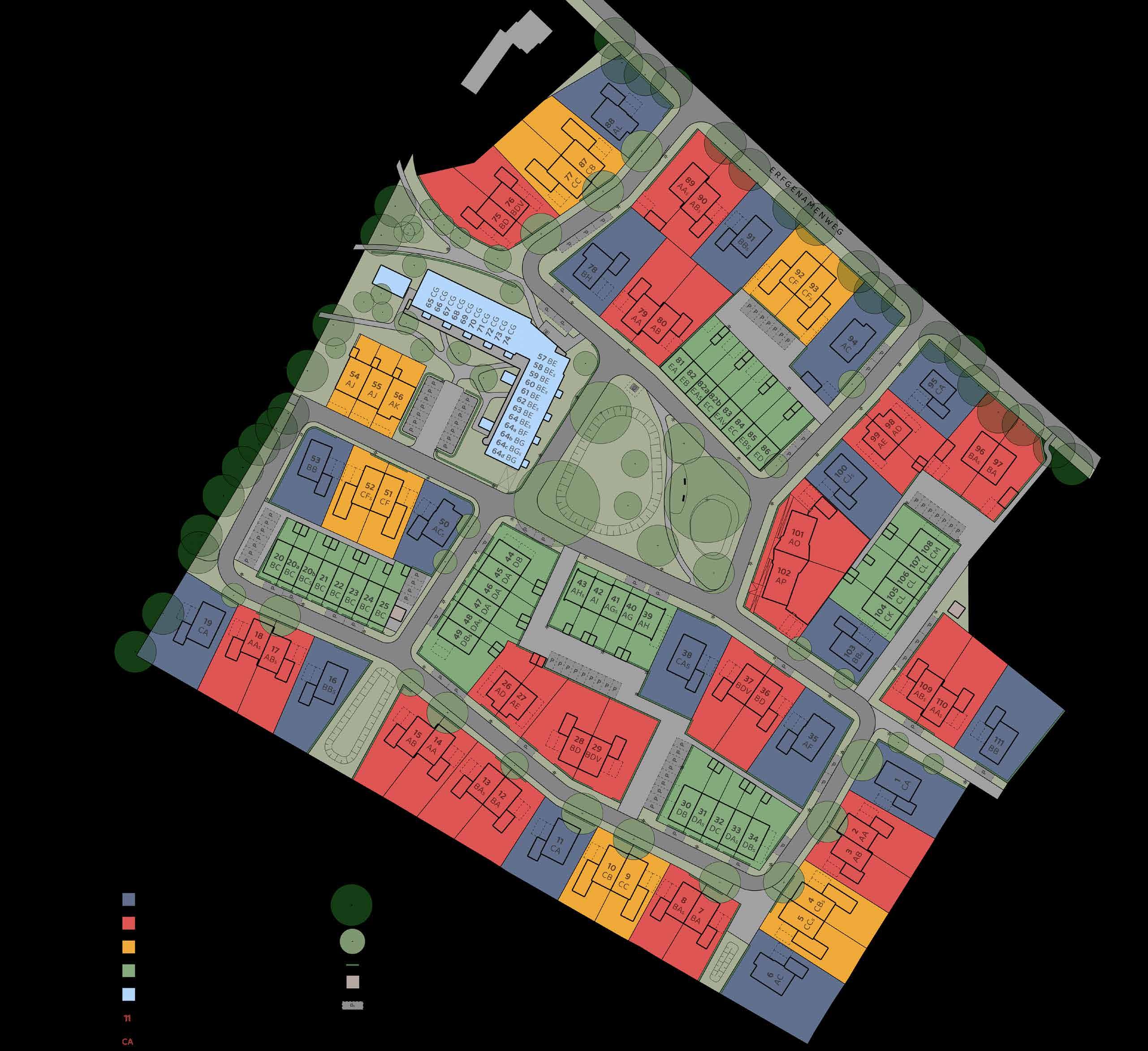 Deze verkoopdocumentatie is nauwkeurig en met zorg samengesteld aan de hand van gegevens en tekeningen, verstrekt door diverse partijen zoals gemeente, stedenbouwkundige, architect, constructeur, etc. Alle in deze brochure weergegeven artist- en sfeerimpressies, kleurstellingen, impressie van de openbare ruimte en perspectieftekeningen dienen als indruk, waaraan geen rechten kunnen worden ontleend. De op tekening aangegeven apparatuur, technische installaties, interieursuggesties, binnendeuren, maten en oppervlakten etc. dienen alleen ter oriëntatie. De nummers bij de woningen, zoals deze op de tekeningen staan aangegeven, zijn bouwnummers. De ontwikkelaar behoudt zich het recht om wijzigingen door te voeren in woningtypes op de verschillende kavels. Deze brochure is géén contractstuk en hieraan kunnen derhalve ook geen rechten worden ontleend. Bij de makelaar zijn de contractstukken beschikbaar.