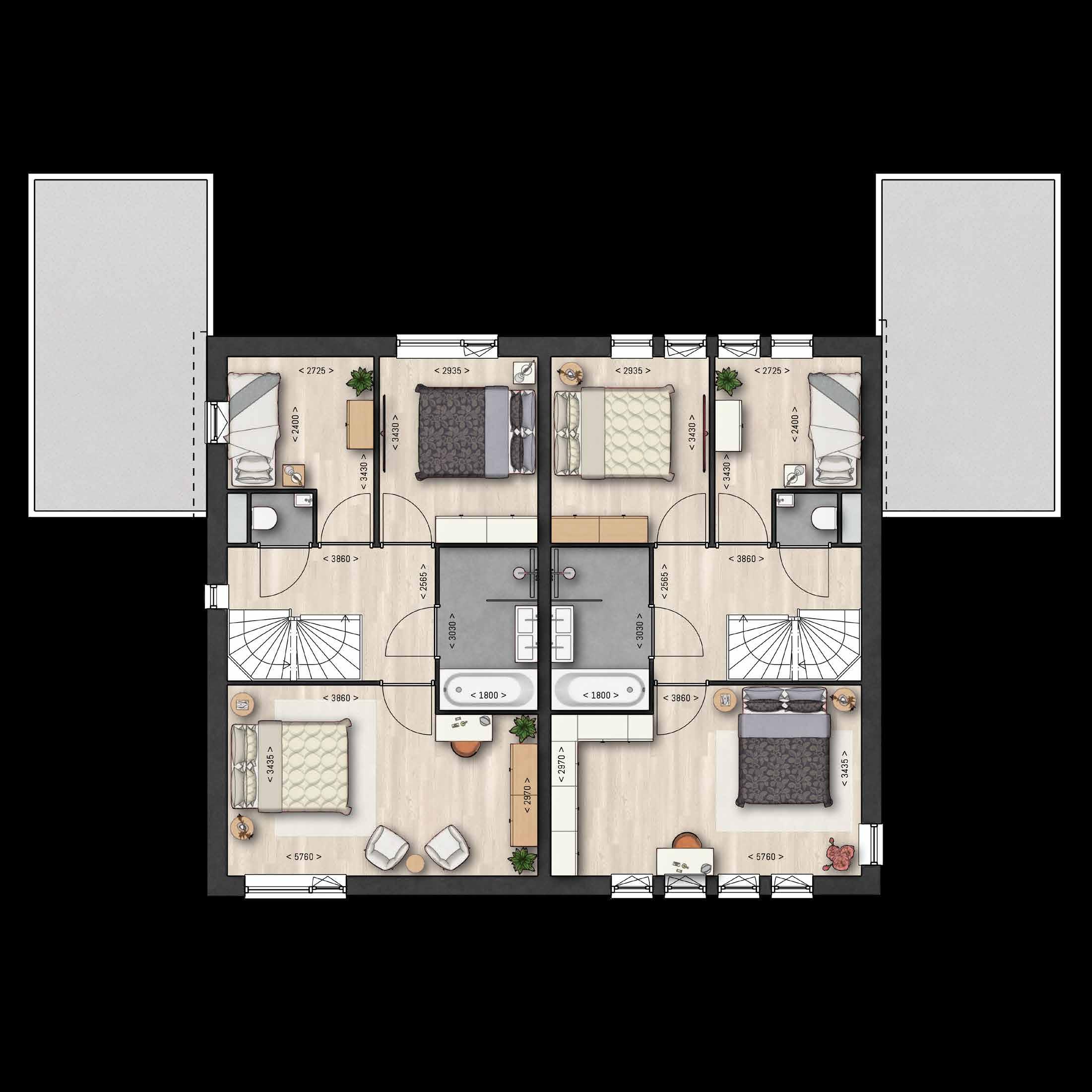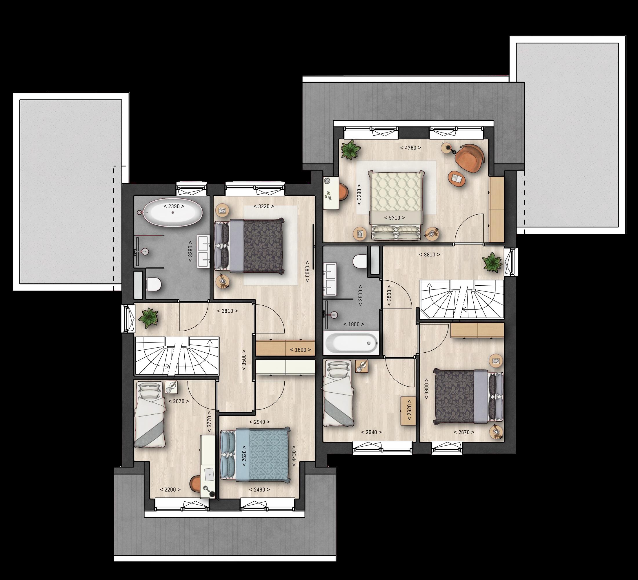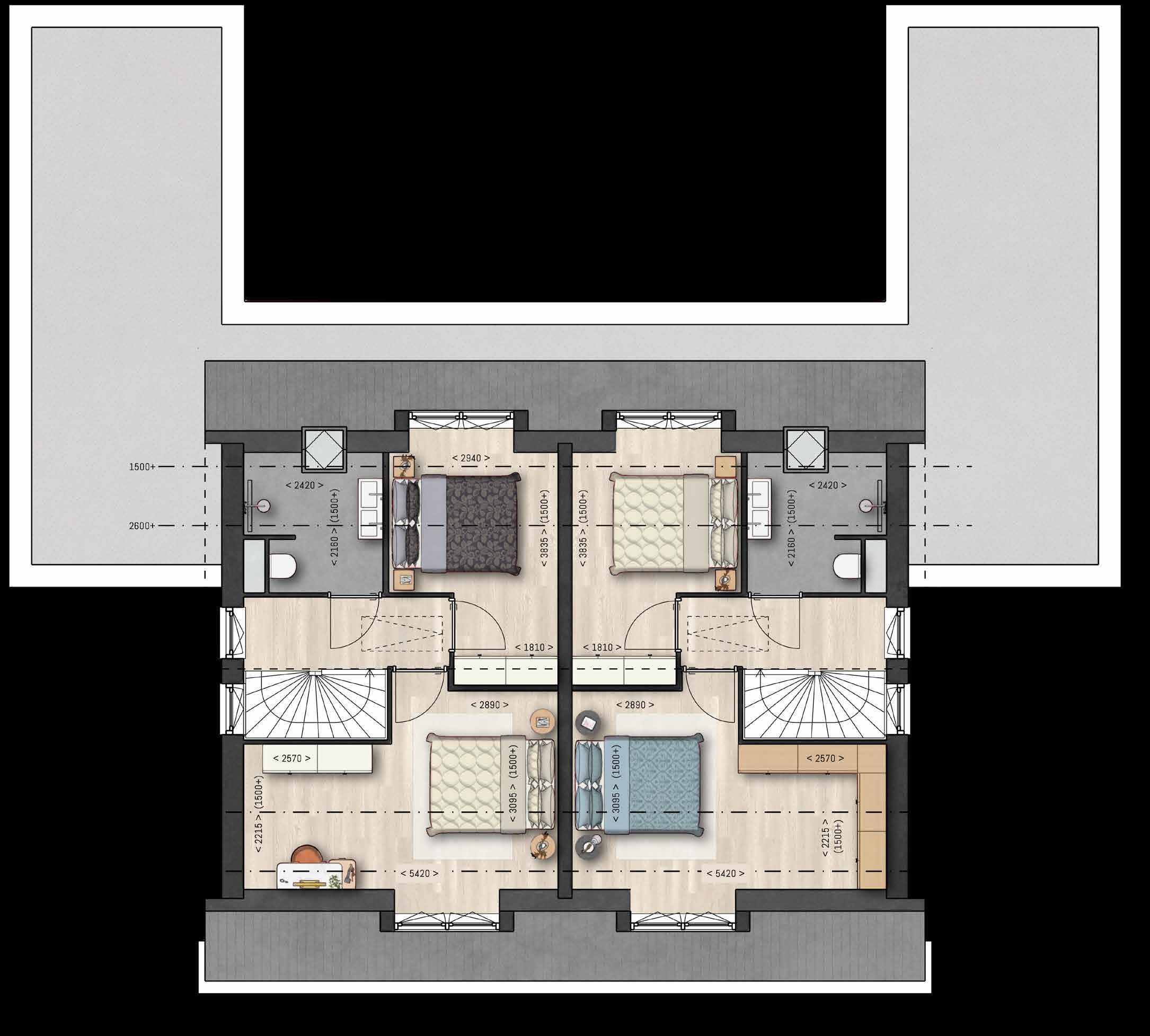 • Kaveloppervlak variërend van: 353 - 357 m2