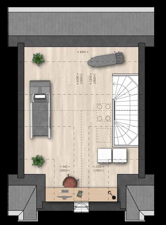 De keuken wordt tot in detail voorbereid met alle aansluitingen voor elektriciteit en water. De keuken biedt volop ruimte voor alle denkbare apparatuur. Van inductie kook-