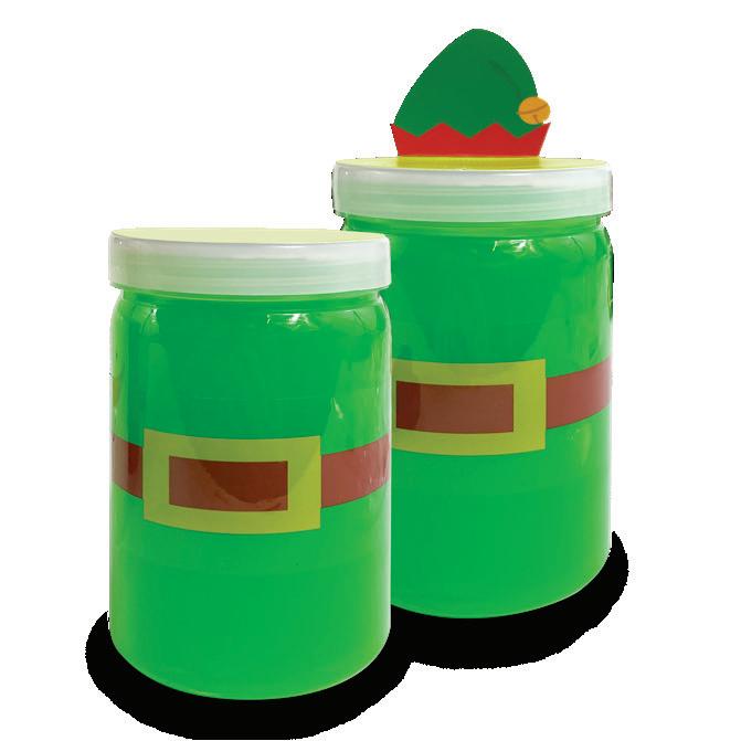 Slime & Slime Kits 102495 Elf Snot Slime 2.6” W. x 4” H. x 2.6” D. 106480 Snowman Hat Slime 2.6” W. x 4” H. x 2.6” D. 106114 Slime & Glitter Kit/ Snowman 4.9” W. x 7.9” H. x 1” D. 106478 Santa Hat Slime 2.6” W. x 4” H. x 2.6” D. 106161 Slime & Glitter Kit/ Santa 5.1” W. x 7.9” H. x 1” D. 106479 Elf Hat Slime 2.6” W. x 4” H. x 2.6” D. 106108 Slime on Backer/ Reindeer 5.7” W. x 5.6” H. x 1” D. 106481 Antler Reindeer Slime 2.6” W. x 4” H. x 2.6” D. 106159 Slime on Backer/ Yeti 5.7” W. x 5.6” H. x 1” D. 106106 Magical North Pole Slime 2.6” W. x 4” H. x 2.6” D. 106107 Sloth Drool Slime 2.6” W. x 4” H. x 2.6” D. All slime containers availabe in PDQs. 55