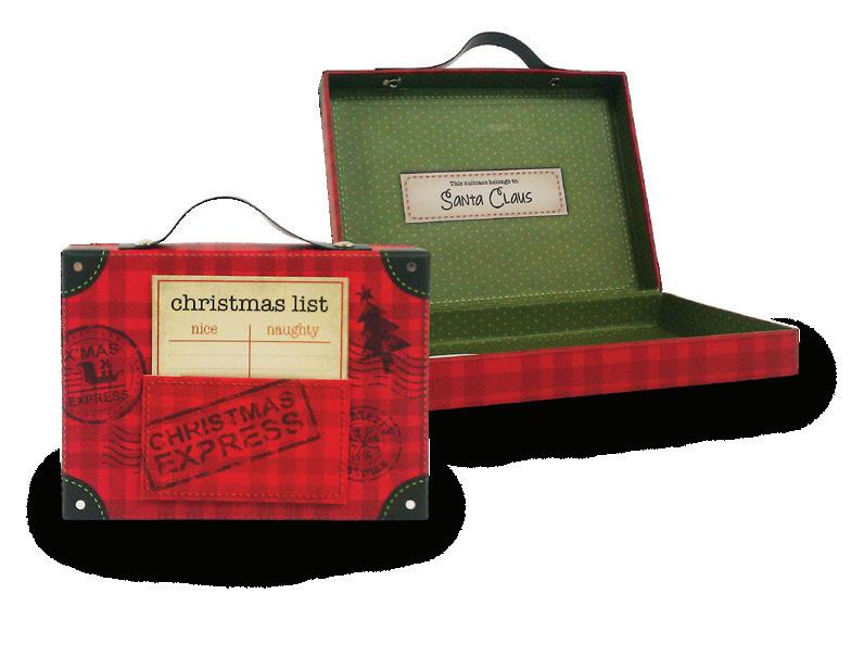 106088 Santa Suitcase/Snowflake 4.3” W. x 4.3” H. x .625” D. 101472 Santa Suitcase/Plaid 4.3” W. x 4.3” H. x .625” D. 101439 Gingerbread