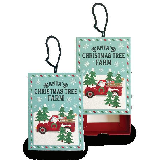 106640 Rectangle Tin/ Snowman 3.4” W. x 6” H. x .75” D. 106641 Rectangle Tin/ Jolly 3.4” W. x 6” H. x .75” D. 106178 Rectangle Tin/ Dog 3.4” W. x 6” H. x .75” D. 106179 Rectangle Tin/ Tree 3.4” W. x 6” H. x .75” D. 107250 Rectangle Tin/ Tree Farm 3.4” W. x 6” H. x .75” D. 106180 Rectangle Tin/ Mug 3.4” W. x 6” H. x .75” D.
