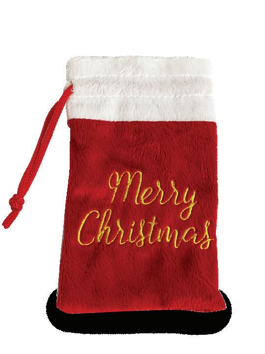 102481 Mini Stocking/Red 4” W. x 5.25” H. x .25” D. 105324 Mini Stocking/Stripes 4” W. x 5.25” H. x .25” D. 104124 Fabric Bag/Deer 3.8” W. x 6” H. x .8” D. 105445 Fabric Bag/Santa 3.8” W. x 7.4” H. x .45” D. 106610 Fabric Bag/Coal 3.8” W. x 7.4” H. x .45” D. Premium Stocking/ Pom Poms 4.5” W. x 6.5” H. x 1” D. 107194 Premium Stocking/ Reindeer 4.5” W. x 8” H. x 1.5” D. 107195 Premium Stocking/ Santa Hanger 5” W. x 10.5” H. x .25” D. 107204 Fabric Bag/Santa 3.3” W. x 5.8” H. x .45” D. 47