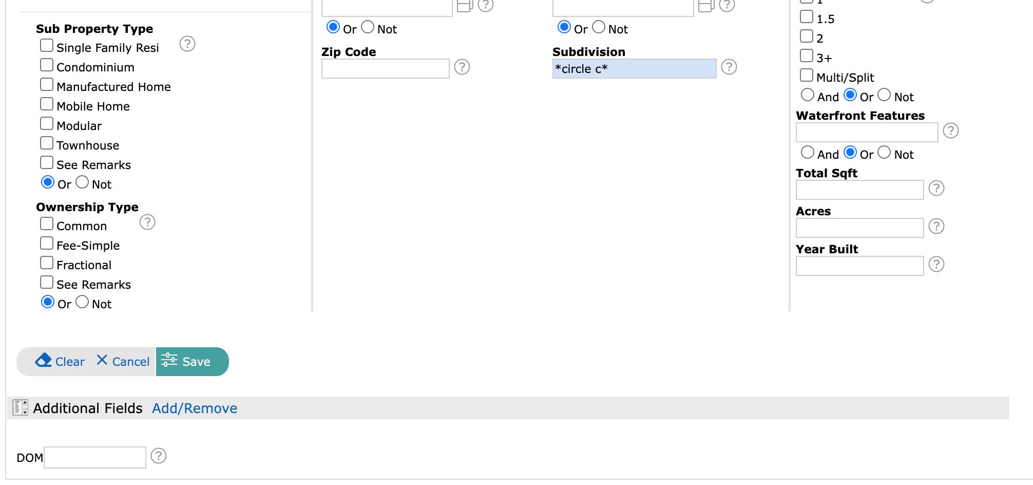 Use the Additional Fields option located at the bottom left-hand of the screen to add or remove additional search filters when needed.
