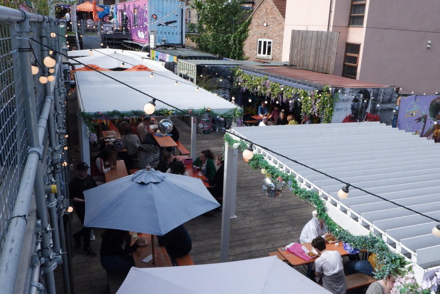 Buzzing destination featuring bars & eateries in funky upcycled shipping containers.