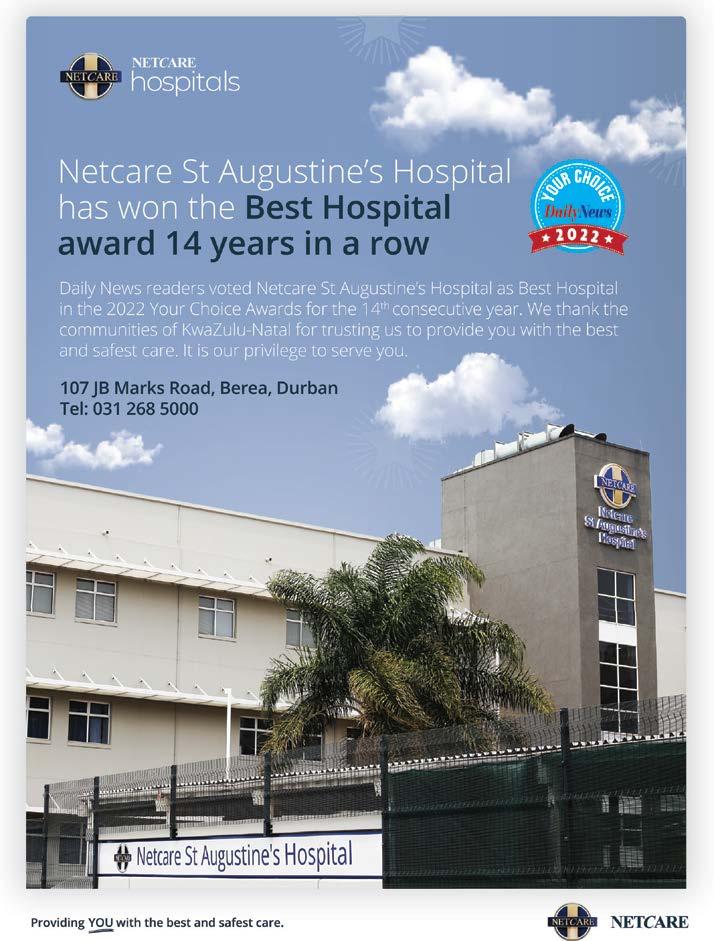 “From the bottom of our hearts, we wish to say thank you to the people of KwaZulu-Natal for your ongoing support and for placing your trust in us. We at Netcare St Augustine’s Hospital, are truly humbled at the honour of winning Best Hospital in the province for the 14th year in a row.”