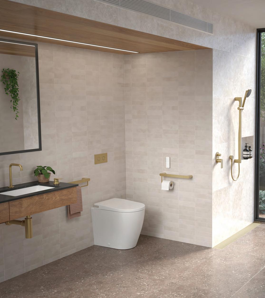 The Caroma Urbane Universal Accessories are a considered extension to the popular Urbane Collection. Sharing a contemporary design language, the universal rails are load rated to meet the demands and activities of daily bathroom tasks. These are available in a range of lengths and with practical additions such as integrated toilet roll holder, towel rails, robe hooks and rail showers that allow for full customisation. Each rail features a contemporary palette of durable finishes and can be seamlessly integrated into any bathroom.
