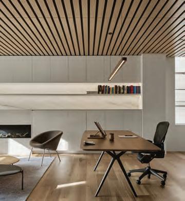 Autex Acoustics Lanes™ is an industry- rst battened-style acoustic treatment that blends functionality and elegant design. Inspired by the winding laneways of inner-city Melbourne, Lanes uses 3D interior facades to create an air gap that delivers superior low-frequency sound absorption, blocking up to 85% of reverberated noise.