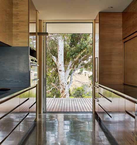 previous | Natural light emphasises the i Nteractio N betweeN raw materials a N d the la N dscape. above | the property was sited for key views such as this framed sceN e from the kitcheN below | floor-to-ceiliN g wiNdows aNd doors see the wrap-arou Nd effect of the laNdscape eNhaN ce the beauty of the workmaN ship iN side.