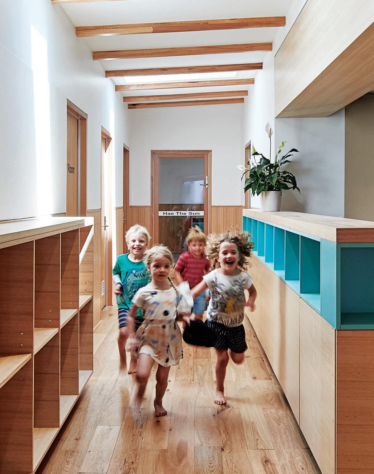 Goodstart Early Learning on Adelaide Street in Brisbane o ers an indoor landscape for play-based learning with a focus on nature. Children are drawn to physical activity, with nature encouraging