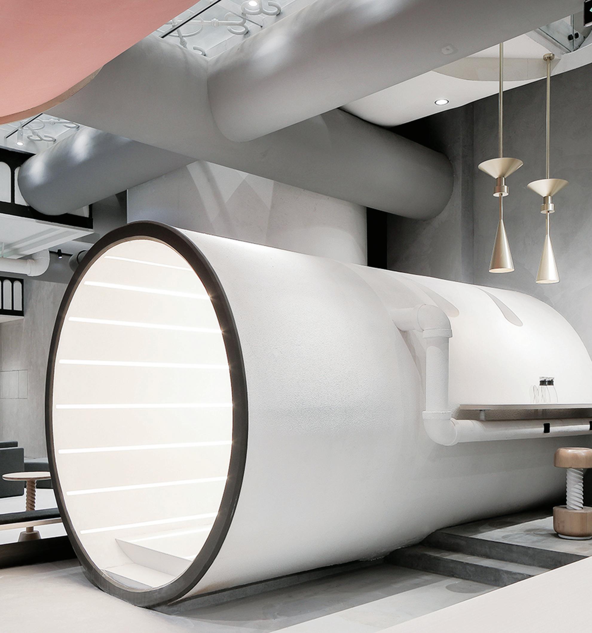 The narrative provided the scene for the pods – a farm, woods, village and seaside – and each has a screen that displays and reads out the verse for children to hear the narrative and poetic rhythm. They play games related to the theme of the verse and use the pod to pretend to be characters in the story. Families are encouraged to keep moving from scene to scene as they follow the narrative. Each pod is rendered in the joyful, illustrative style of children’s storybooks and the so , natural pale e is aligned with the high-end Chadstone se ing.