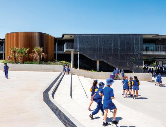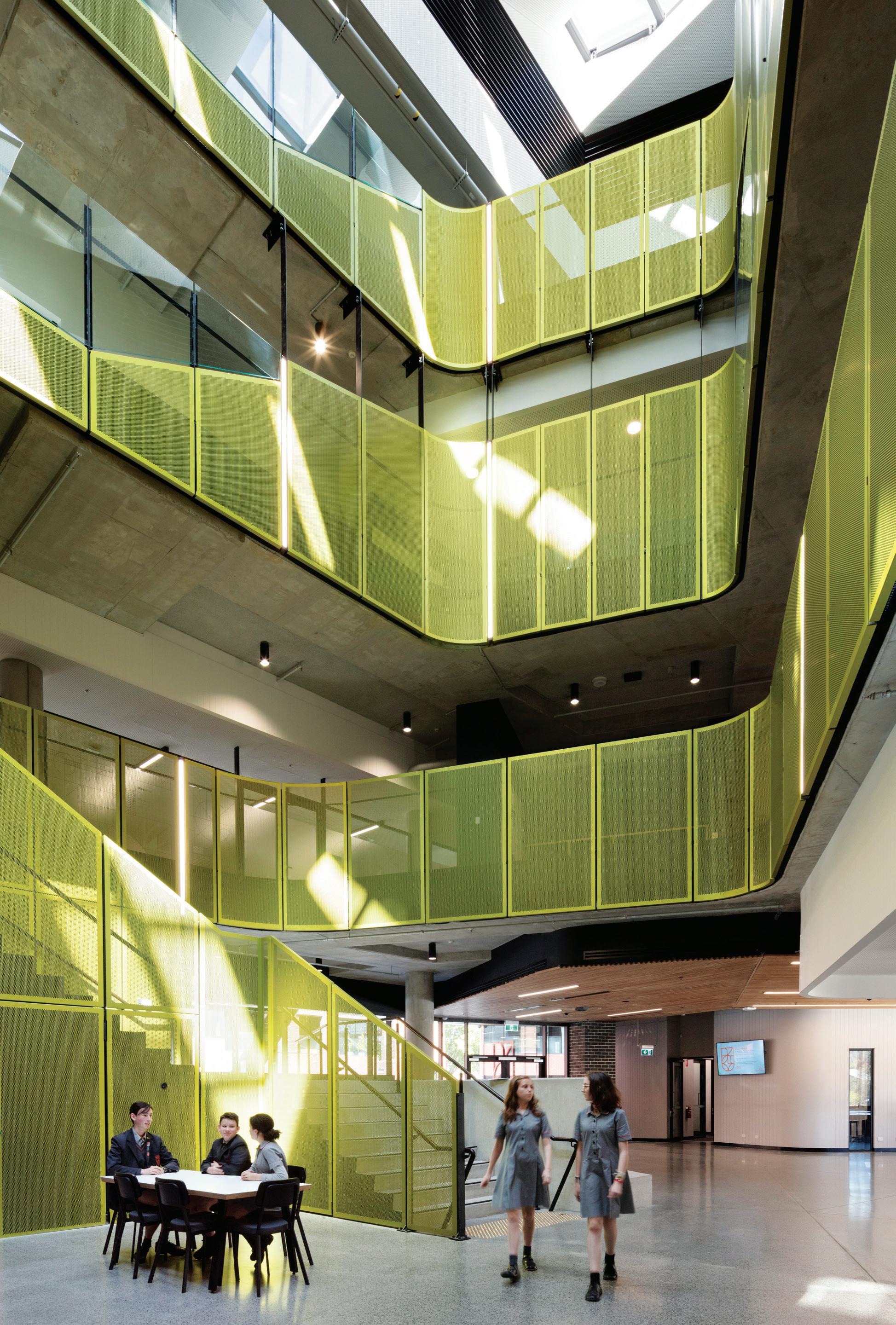 While the MLC Senior School very much looks to the future, the project is fi rmly embedded in its site too. A walkway links the building to other structures on campus, while two new outdoor areas ensure the interior receives an abundance of north-facing light. Rossington and the team have also explicitly acknowledged the past by positioning a two-storey feature window so that it takes in views of one of the school’s heritage buildings. Such sensitivity to context highlights the scheme’s potency, adding yet another level of sophistication to the design, which ultimately respects the students as young adults, giving them a positive taste of what lies beyond graduation.