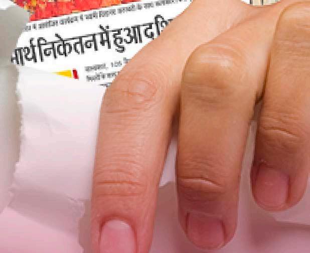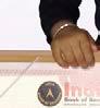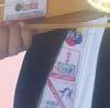 Maximum Indian currency notes with denominations and serial numbers identified by a child blindfolded