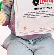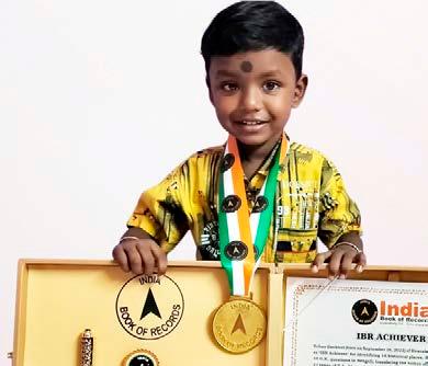 P. Aadhimithran (born on January 8, 2024) of Tirunelveli, Tamil Nadu, is titled as ‘IBR Achiever’ for identifying 10 insects, 6 birds, 8 vegetables, 11 vehicles, 13 animals, 5 parts of the body, 7 actions, 15 fruits, 26 alphabetical words and 8 national leaders; recalling days of the week in Tamil and the capitals of 10 countries; counting from 1 to 10, at the age of 1 year and 11 months, as confirmed on months, as confirmed on