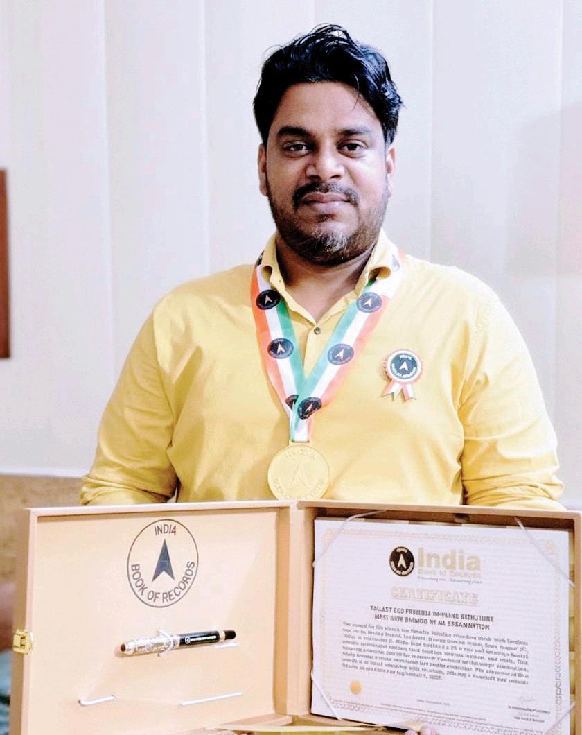Dhananjay Goswami (born on April 4, 1963) of Bankura, West Bengal, is titled as ‘IBR Achiever’ for growing a marigold plant, measuring 8 feet and 5 inches (259 cm) in height, at his residence, as confirmed on December 2, 2025.