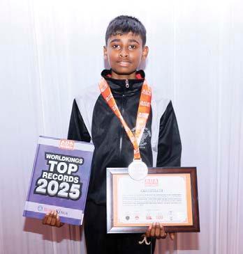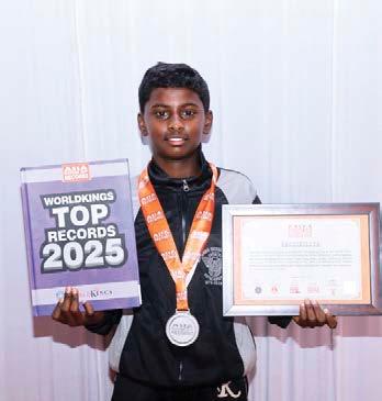 The record for depicting the maximum number of patterns on solved 4 x 4 Rubik’s cubes and back to solved state was set by Rayan Fernandez Cheeran (born on February 28, 2015) of Thrissur, Kerala. He depicted 8 different patterns (checkerboard, cube-in-a-cube, cubein-a-cube-in-a-cube, dot, plus, vertical stripes, shifted stripes and window) on separate solved 4 x 4 Rubik’s cubes, and back to its solved state in 1 minute, 53 seconds and 25 milliseconds, at the age of 10 years, 9 months and 1 day, as confirmed on November 29, 2025.