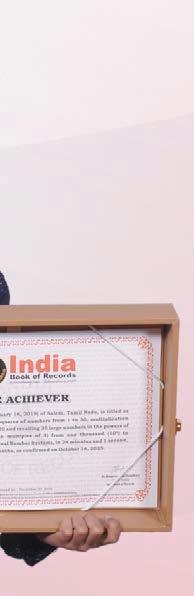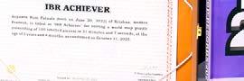 Virajhh Thiruvarangam (born on February 3, 2021) of Chennai, Tamil Nadu, is titled as ‘IBR Achiever’ for reciting 101 number names based on the exponential powers of 10 from 10^0 (1) to 10^100 (googol) in 9 minutes and 44 seconds; identifying the flags and recalling the names of 125 (UN recognised) countries, along with continents, in 15 minutes and 59 seconds by viewing the images of flags on flashcards, at the age of 4 years and 10 months, as confirmed on December 11, 2025.
