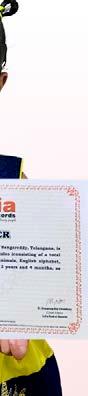 Thummalapalli Sri Aadhya (born on July 24, 2018) of NTR, Andhra Pradesh, is titled as ‘IBR Achiever’ for reciting all 20 shlokas of chapter 12 of the Bhagavad Gita; performing 306 hula hoop spins in the kneeling position; drawing 74 pictures with letters of the English alphabet and numbers; 165 G. K. questions; narrating an English story; and performing two semi-classical dances with hula hoops, at the age of 6 11 months, as confirmed on July 15, 2025.
