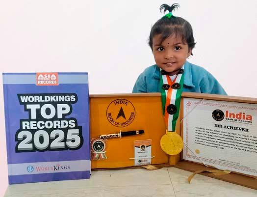 Advika Biswal (born on December 22, 2021) of Dhenkanal, Odisha, is titled as ‘IBR Achiever’ for identifying and naming 24 parts of the body, 21 yoga poses, 24 traffic signals, 15 colours, 24 shapes, 7 freedom fighters, 16 vehicles, 15 fruits, 15 scientific name, 15 elements; answering 22 G.K. questions; recalling Hindi alphabetical words, 13 mantras, 40 opposite words, 17 national symbols, 12 English and 11 Hindi nursery rhymes; at the age of 3 years and 10 months, as confirmed on November 8, 2025.
