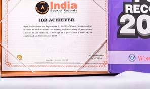 Pramansh Pramol Hambarde (born on March 30, 2023) of Nanded Maharashtra, is titled as ‘IBR Achiever’ for identifying and naming 127 images on flashcards, including 14 fruits, 12 vegetables, 30 animals, 5 birds, 12 vegetables, 6 insects, 5 birds, 9 shapes, 16 vehicles and 18 miscellaneous pictures, in 4 minutes and 39 seconds, at the age of 2 years and 3 months, as confirmed on July 10, 2025.