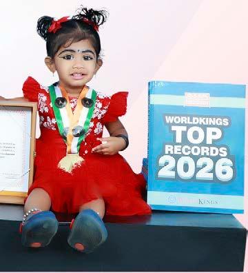 Minha M. (born on June 4, 2024) of Kasaragod, Kerala, is titled as ‘IBR Achiever’ for identifying 10 animals, 5 vegetables, 5 deities, 14 fruits, 8 birds, 7 vehicles, 8 parts of the body and 9 miscellaneous items; imitating the sounds of 5 birds and animals, at the age of 1 year and 6 months, as confirmed on December 15, 2025.