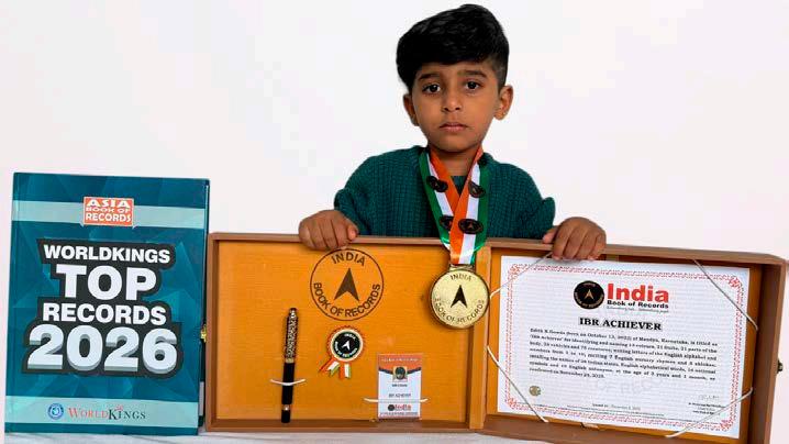 Advik Samal (born on October 11, 2023) of Khordha, Odisha, is titled as ‘IBR Achiever’ for identifying 15 food items, 15 fruits, 18 animals, 20 vegetables, 11 colours, 19 parts of the body and 9 shapes; recalling 26 alphabetical words; performing 9 activities; and answering 5 questions on religion, at the age of 2 years and 2 months, as confirmed on December 16, 2025.