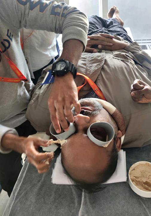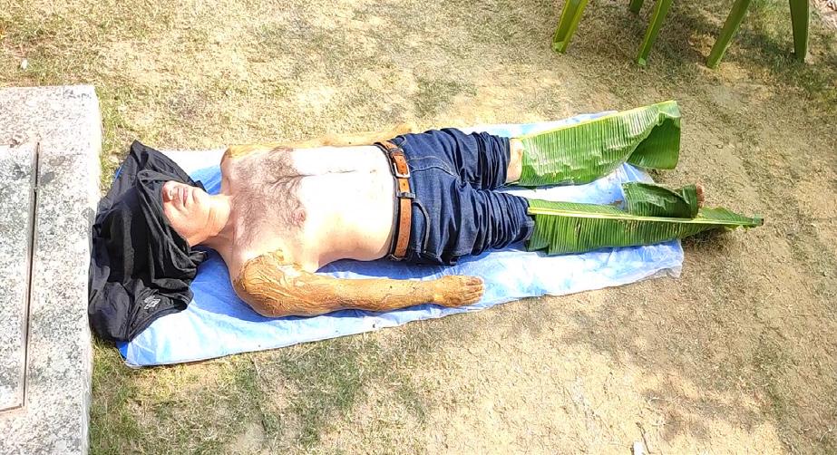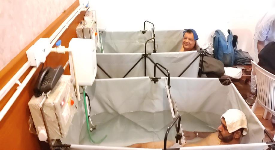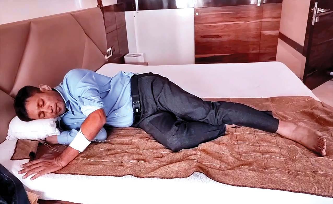Banana Leaf Therapy Hot Water Immersion Nasyam Netra Basti Blood Pressure assessment before Head-Down-Tilt Janu Basti Patients on Zero Volt Foot Mat Patients on DIP Diet Patients on DIP Diet Zero Volt Bedsheet