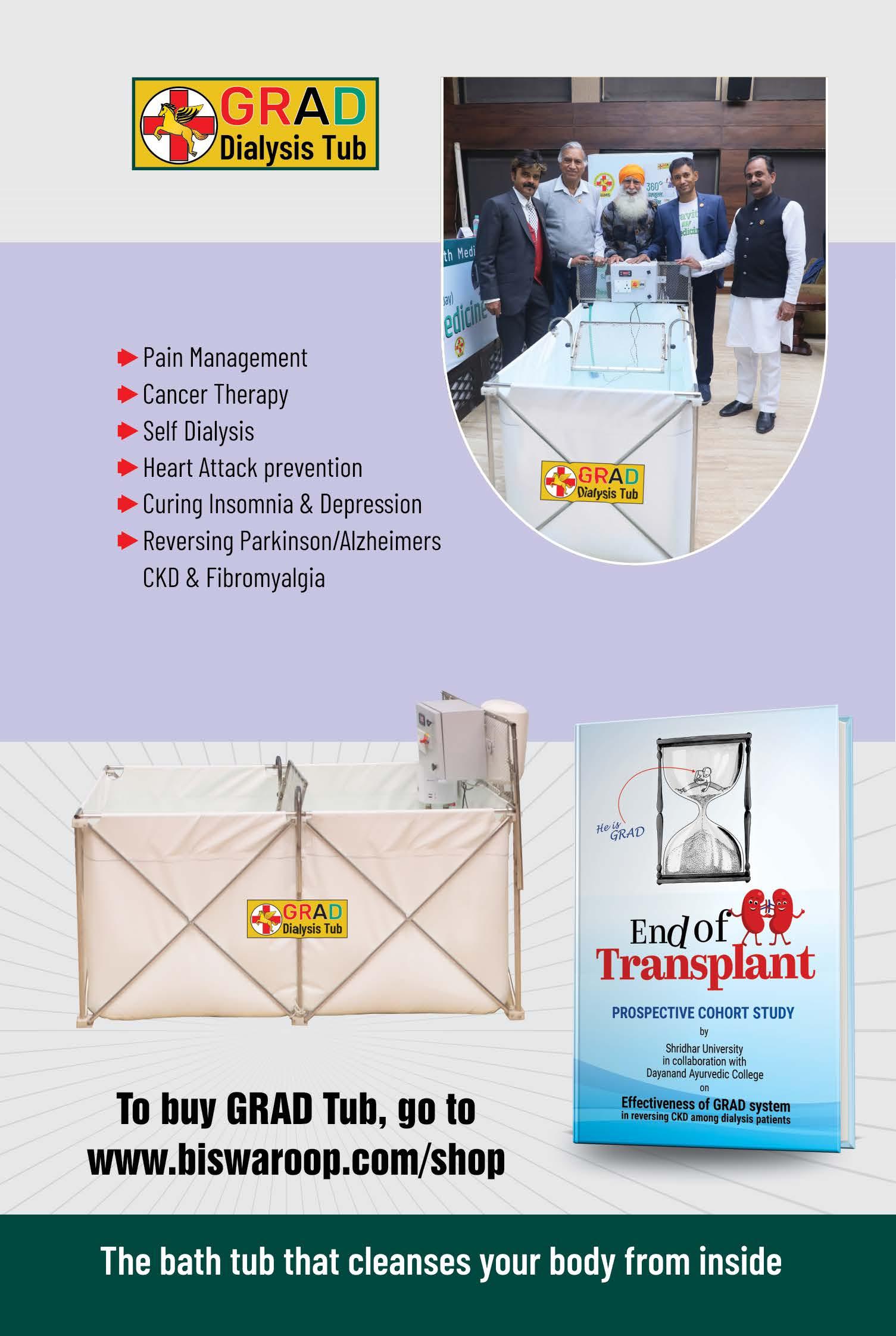 To balance the physical body, I have developed a law of gravity and a heat-based “GRAD System”. The observational study done on the GRAD system proved its effectiveness in reversing kidney failure and freeing the patient from dialysis dependency. The GRAD system has been the foundation protocol at our HIIMS chain of hospitals and is now adopted by other hospitals in India, Nepal, Vietnam and Malaysia.