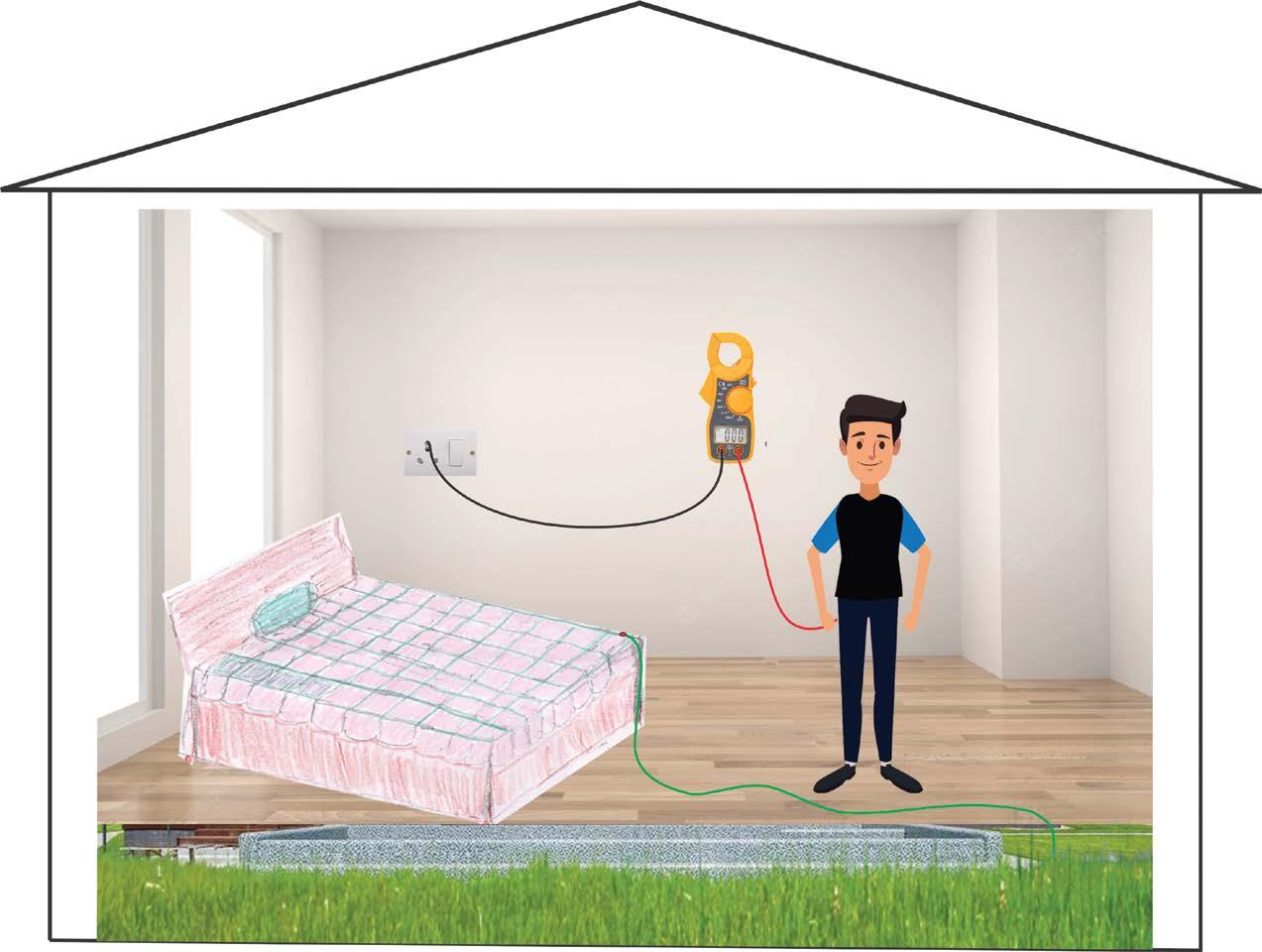 So, now you know how to check your voltage when you are not grounded, and also when you are in contact with the earth through this bed sheet. Once you have checked your voltage, you can remove the voltmeter. Now, if the socket is not working, or if your building is not grounded properly, in that case, you will have to directly connect with the earth. That way, too, you can get the right voltage, which is expected to be zero, if you are sleeping or lying down on this zero-volt bed sheet.