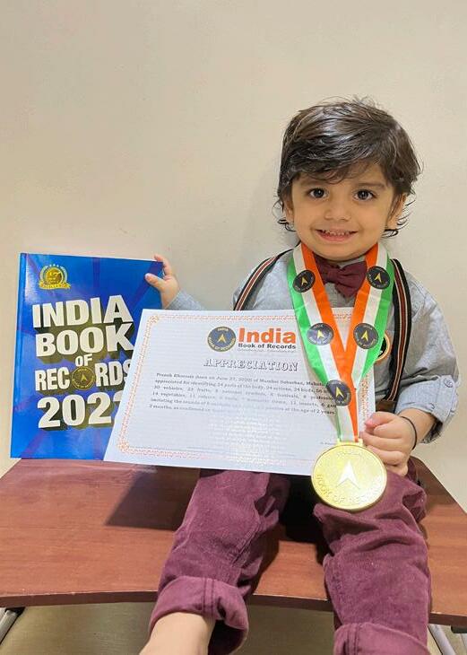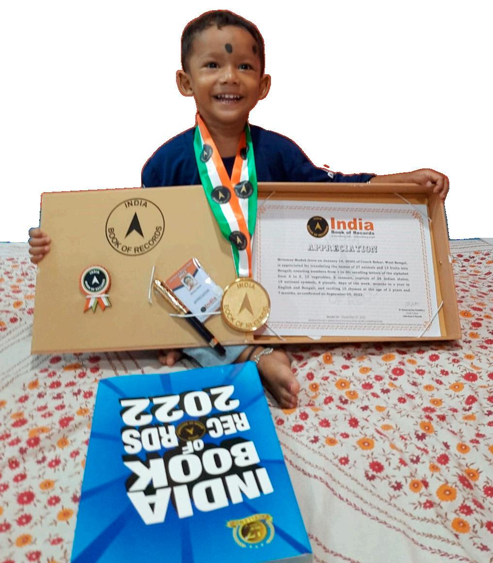 Darshan Chakraborty (born on September 13, 2020) of Paschim Medinipur, West Bengal, is appreciated for recalling 19 words in English, 10 other words; identifying corresponding pictures of the English alphabet, 18 fruits, 12