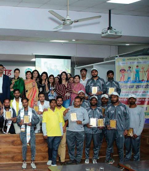 अभियान के दौरान, 100 घंटे पूरे होने की खुशी में, पटेल नगर के जेबलॉक में स्ानीय मनहलाओं द्ारा सफाई करमतियों का पुषपमालाएं पहना कर अभिनंदन नकया गया। इस मौके पर रोटरी कलब गाभज़याबाद ग्टर के पू्व्ड अधयक् सुिाष गुपता और नगर स्वास्य अपिकारी ्व गाभज़याबाद स्वच्छता अभियान के नोरल अपिकारी रॉ. पमसथलेश कुमार ससतिह ने लोगों से गीला कचरा और सूखा कचरा अलग-अलग परबबों में रखने का आग्ह नकया। स्ानीय लोगों को पलाखसटक का उपयोग न करने की शपथ िी ददल्वाई गई। इंपरयन रेरक्रॉस सोसाइटी गाभज़याबाद द्ारा सफाई करमतियों को हाईजीन नकट न्वतररत नकये गए । गाभज़याबाद नगर ननगम की मेयर सुश्री आशा शमा्ड ने कहा नक स्वच्छता के मामले में पहले उनके शहर का उत्तर प्रदेश में 67्वां और देश में 351्वां स्ान था, जबनक आज स्वच्छता स्वक्ण में गाभज़याबाद शहर उत्तर प्रदेश में प्रथम और राष्ट्रीय सतर पर 12्वीं पादान पर है। इस महत्वपूण्ड उपलमब्ध में शहर के 4700 सफाई पमत्रों की टीम का न्वशेष योगदान रहा। अब नगर ननगम स्वच्छता के मामले में देश में पहले स्ान पर आने के सलए प्रयासरत है। रोटेररयन आससफ खान ने इंपरया बुक ऑफ ररकॉर् ्डस को बताया नक अभियान के दौरान मुखय मागषों पर ही नहीं, बललक शहर के अंदर गसलयों में िी व्ापक रूप से सफाई की गई और आस-पड़ोस में सफाई रखने के बारे में जन-जागरूकता अभियान िी चलाया गया। गालियाबाद स्वच्छता अमभयान के नोडल अधधकारी डकॉ. मिधथलेश कु िार धसंह ने लोगों से गीला कचरा और सखा कचरा अलग-अलग डडब्ों ि रखने का आग्रह कक या। स्ानीय लोगों को प्ास्टिक का उपयोग न करने की शपथ भी कदलवाई गई। इंडडयन रेडक्कॉस सोसाइटी गालियाबाद द्ारा सफाई कमिषियों को हाईिीन ककट मवतररत कक ये गए । 9 इंडिया बुक ऑफ रिकॉर्ड्स | दिििर 2022