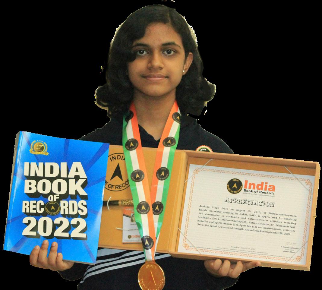 (born on May 7, 2009) of Yavatmal, Maharashtra, is appreciated for achieving a large number of certificates in multiple activities. She achieved 200 online and offline certificates by participating in quiz, handwriting, game developing and e-Tests from January 26, 2018 to October 16, 2022 at the age of 13 years and 5 months, as confirmed on October 17, 2022.