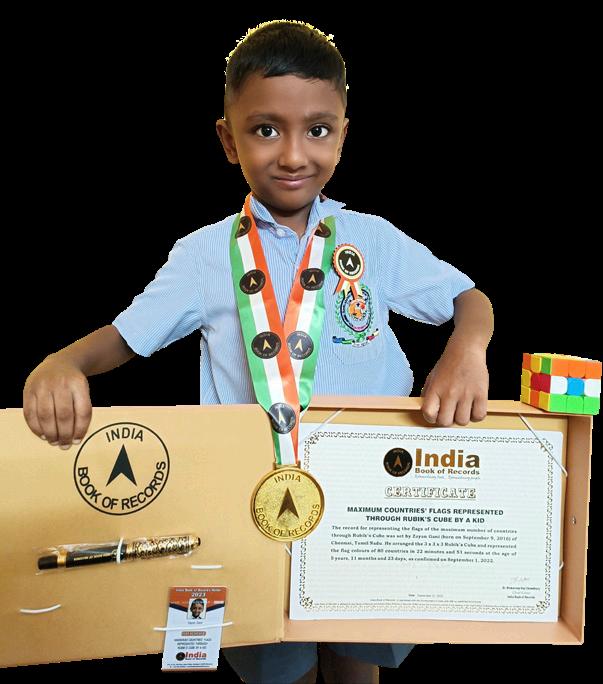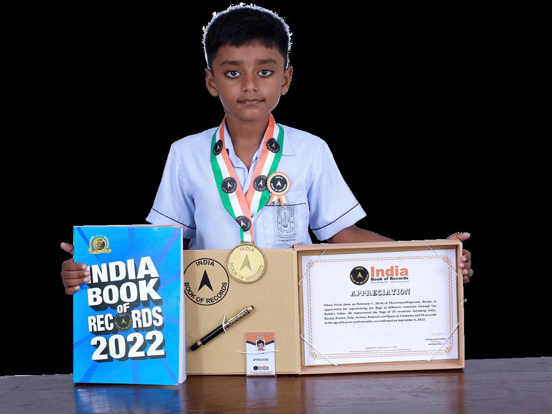 Vihan Vivek (born on February 7, 2016) of Thiruvananthapuram, Kerala, is appreciated for representing the flags of different countries through the Rubik’s Cubes. He represented the flags of 20 countries including