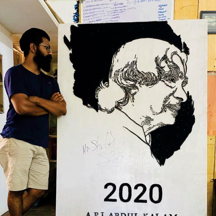 Harish Vinod (born on December 26, 2010) of Thiruvananthapuram, Kerala, is appreciated for making different types of 18 drawings and paintings on leaders, actors, gods, cartoon characters and others using natural art, tea powder, pencils and egg shells at the age of 11 years and 8 months, as confirmed on September 6, 2022.