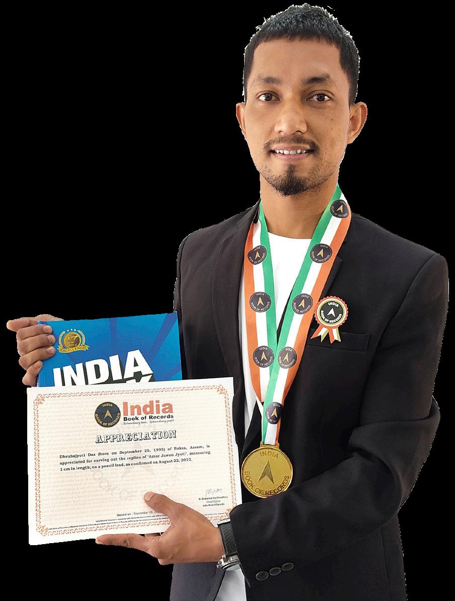 Dhrubajyoti Das September 25, 1995) of Baksa, Assam, is appreciated for carving out the replica of ‘Amar Jawan Jyoti’, measuring 1 cm in length, on a pencil lead, as confirmed on August 22, 2022.