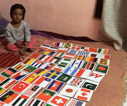 Sourish Roy (born on October 17, 2015) of North 24-parganas, West Bengal, is appreciated for identifying the flags of all the 195 (UN recognised) countries and recalling their