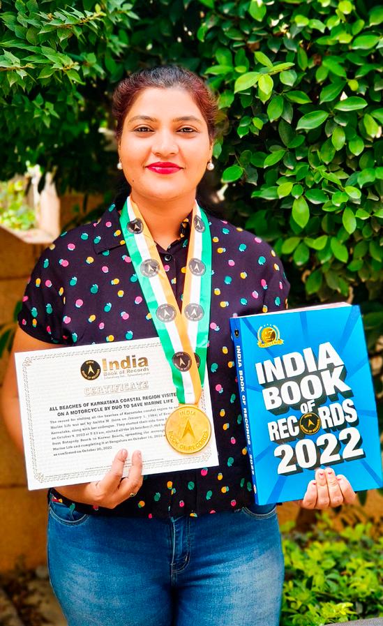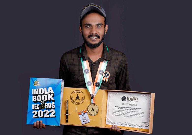 तमिलनाडु ि कोयंबटर स्थित ‘उमयर’ नािक एक एनजीओ ने सड़क सुरक्ा जागरूकता पर एक सािहिक संकलप ि भाग लेने वाले छात्रों की अमिकति संखया का ररकॉड बनाया िै। मवभभन्न सकलरों और कॉलेजरों के छात्रों ने 12 अकटबर, 2022 को एक िी सिय ि खुद उपस्थित रि कर और ऑनलाइन िोड से, एक साथ सड़क सुरक्ा जागरूकता की शपथ ली। इस तरि से एभशया बुक ऑफ ररकॉरस्ड (एबीआर) के भलए एक नया ररकॉड बन गया। कानपुर में चला महा स्वच्छता अभियान उत्तर प्रदेश के कानपुर नगर हनगि ने सवचछता के िािले ि अपना िी हपछला ररकॉड तोड़ हदया। नगर हनगि ने कानपुर शिर ि 170 घंटे तक लगातार सफाई अभभयान चलाने का अपना हपछला ररकॉड धवसत करते हुए, इस बार 186 घंटे तक मबना रुके सफाई िैराथन चलाने का एक नया कीर्तिान थिाहपत हकया िै। 3 4 6 10 रंगों की छटा बिखेरते नन् कलाकार एक आट्ड रूि को पेंट करने वाली सबसे कि उम्र की जोड़ी का ररकॉड मवराट करण और सनमवथा सुंदरी ने बनाया िै। बेंगलरु, कना्डटक के भाई-बिन की इस जोड़ी ने, हकडजी िॉनटेसरी सकल ि एक आट्ड रूि के 712 वग्ड फीट क्ेत् को तीन घंटे ि रंगीन मचत्कारी से सराबोर कर इंहडया बुक ऑफ़ ररकॉरस्ड के तित एक नया कीर्तिान थिाहपत कर हदया। भिक्ों का िंग्रह करने का जुनून सवा्डमिक संखया ि अनेक देशरों के मसक् एकत् करने का ररकॉड भुवनेश्वर, उड़ीसा के सत्ी रोग मवशेषज्ञ डॉ. सदानंद पाभणग्रिी ने बनाया िै। उनिरोंने 246 देशरों के 2239 अहवितीय मसक् एकत् हकए िैं, भजनि संयुक्त राष् से िानयता प्राप्त 192 देश, 27 आभरित देश और 27 अनय क्ेत् शामिल िैं। ििि िड़ी स्ारक मैराथन कलैगनार ििोररयल इंटरनेशनल िैराथन ि कुल 43,102 प्रमतभाहगयरों ने भाग भलया, भजसि 42 हकिी की फुल िैराथन, 21 हकिी की िाफ-िैराथन, 10 हकिी की िैराथन और 5 हकिी की दौड़ सहित चार तरि की दौड़ शामिल थीं। 1 कवर स्टोरी स्टोरी विषय ि स्तु ii इंडिया बुक ऑफ रिकॉर्ड्स | दिििर 2022