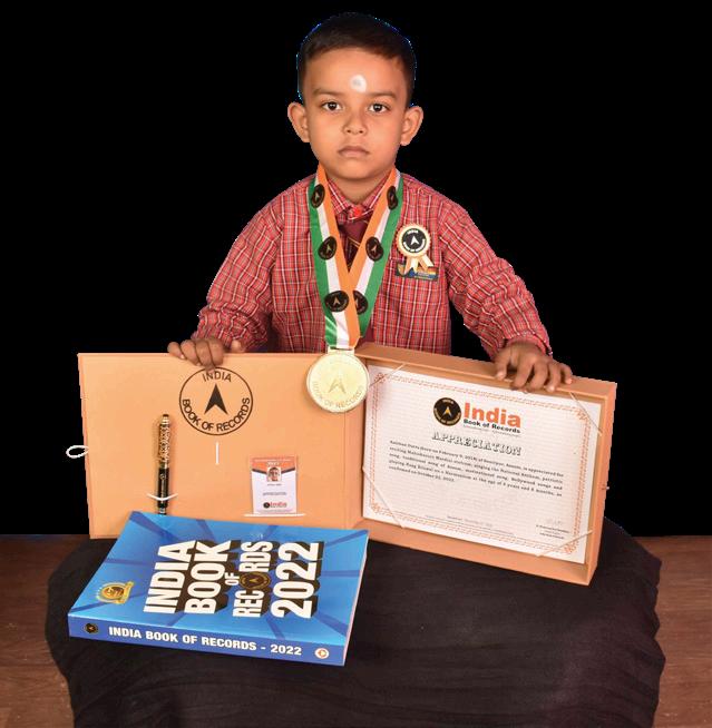 Anirban Dutta (born on February 9, 2018) of Sonitpur, Assam, is appreciated for reciting Mahishasura Mardini stotram; singing the National Anthem, patriotic song, traditional song of Assam, motivational song, Bollywood songs and playing Raag Bilawal on a Harmonium at the age of 4 years and 8 months, as confirmed on October 22, 2022.