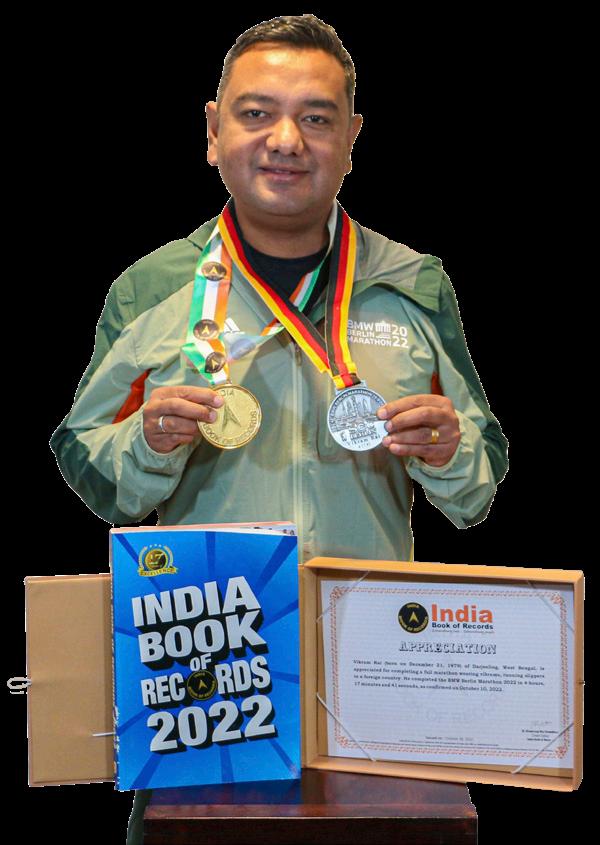 Vikram Rai (born on December 21, 1979) of Darjeeling, West Bengal, is appreciated for completing a full marathon wearing vibrams, running slippers in a foreign country. He completed the BMW Berlin Marathon 2022 in 4 hours, 17 minutes and 41 seconds, as confirmed on October 10, 2022.