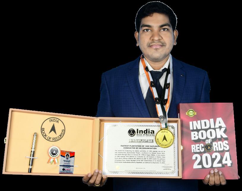 The record for conducting the fastest plantation of 1000 saplings was set by L&T Construction, Sardarshahar Project, coordinated by Rakesh Kumar Sahu-L&T Safety Manager (born on January 25, 1990) of Angul, Odisha. A total number of 1000 saplings were planted in 2 minutes by 135 students of Mahila Vidya Peeth Meera Niketan Girls Sr. Sec. School on July 13, 2024 (under the guidance of Sandeep Char, Project Manager of the L&T Construction) at the Mahila Vidya Peeth School, Sardarshahar (Churu), Rajasthan, as confirmed on September 19, 2024.