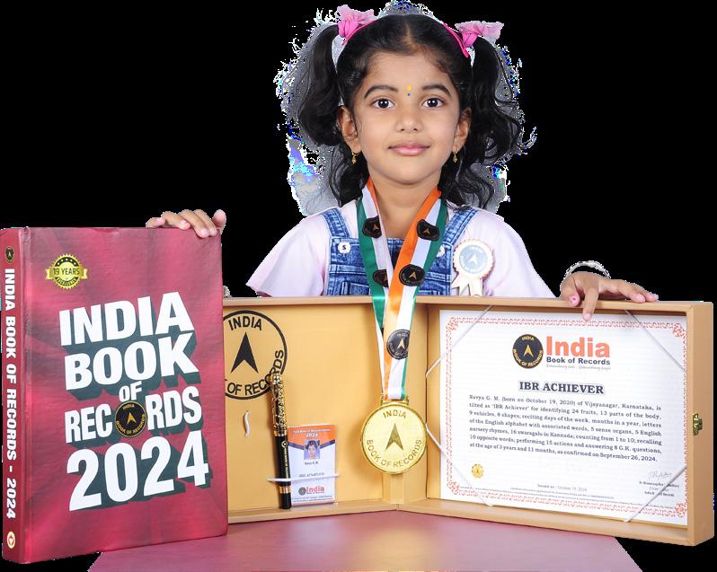 The record for being the fastest to recite the letters of the Hindi alphabet with associated words was set by Nishvika Raj. M.G. (born on January 20, 2020) of Chitradurga, Karnataka. She recited all the 43 letters (13 vowels and 30 consonants) of the Hindi alphabet with associated words in 1 minute and 19 seconds, at the age of 4 years, 7 months and 21 days, as confirmed on September 10,