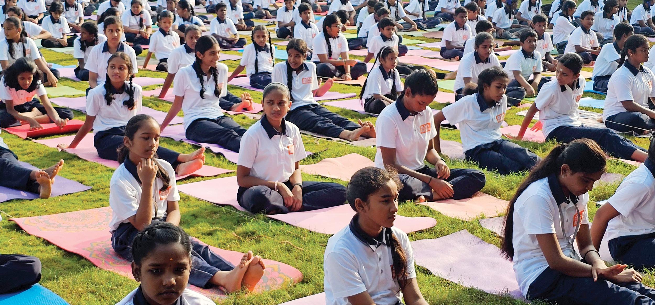 The record for being the fastest to represent letters of the English alphabet with yoga poses was set by K. Vismaya (born on January 1, 2016) of Rangareddy, Telangana. She represented all the letters of the English alphabet with 26 different yoga poses in 3 minutes, 14 seconds and 43 milliseconds, at the age of 8 years, 8 months and 25 days, as confirmed on